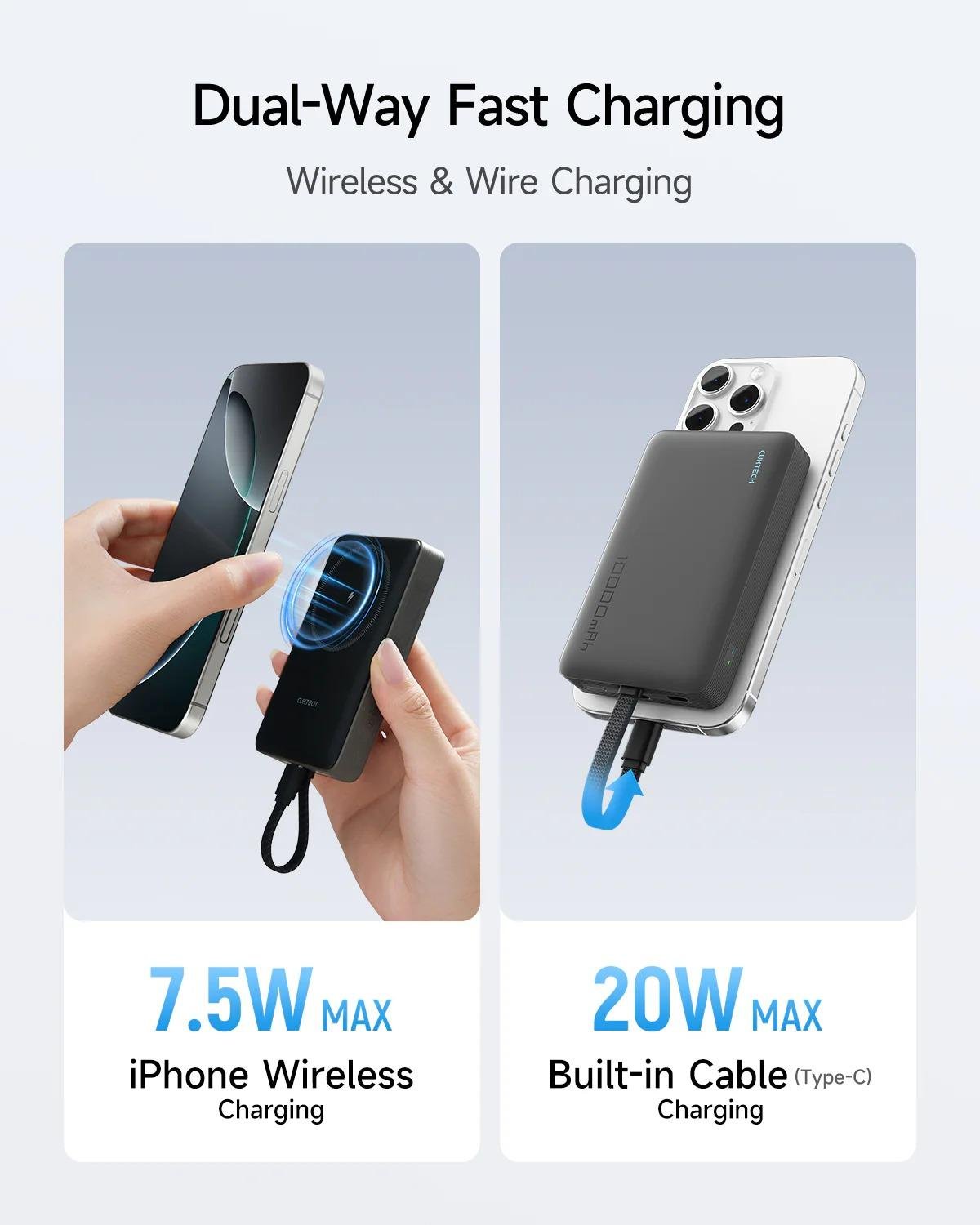 ALL-IN-ONE WITH MAGNETIC & BUILT-IN CABLE: Charge any device anytime, anywhere with the built-in USB-C cable – perfect for iPhones and USB-C devices. No more tangled cables and forgotten cables on the go.