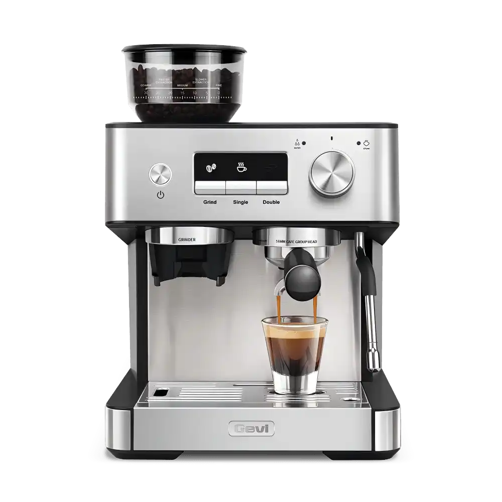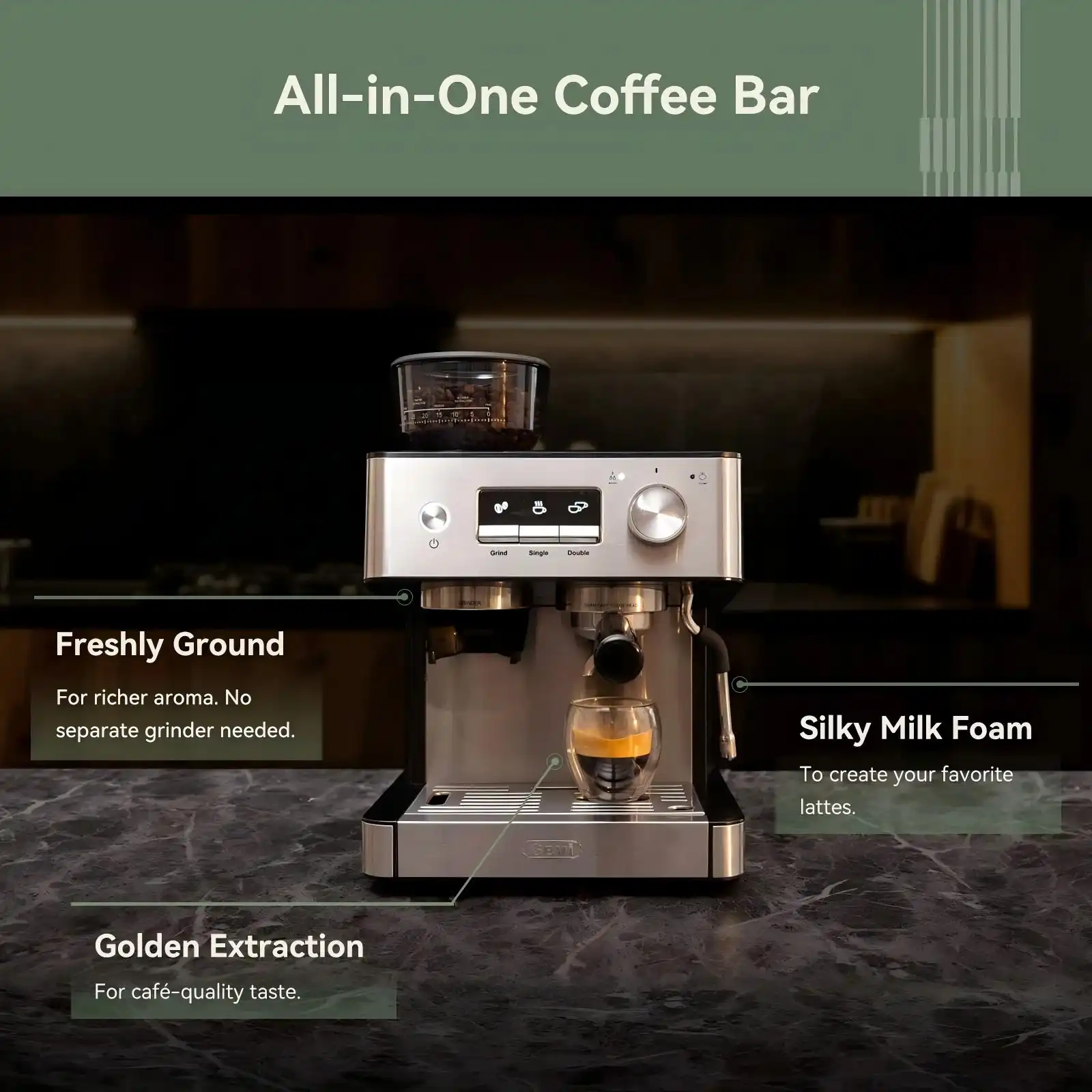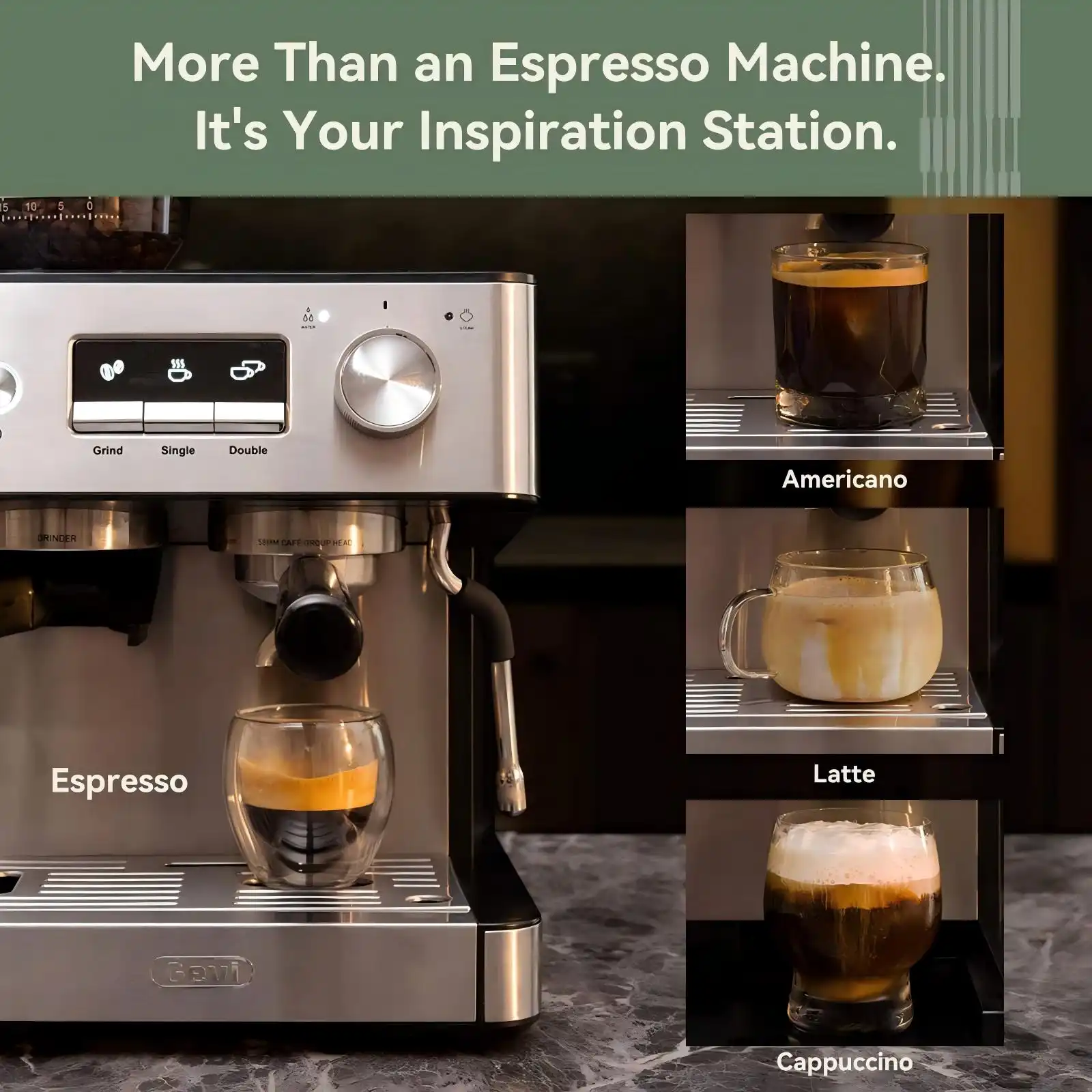 GEVI 20 Bar Espresso Maker with Built-in Bean Grinder & Milk Frother ECMI0