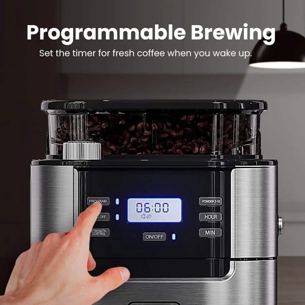GEVI Programmable 10-Cup Grind & Brew Coffee Maker Machine with Built-in Grinder DCMB0